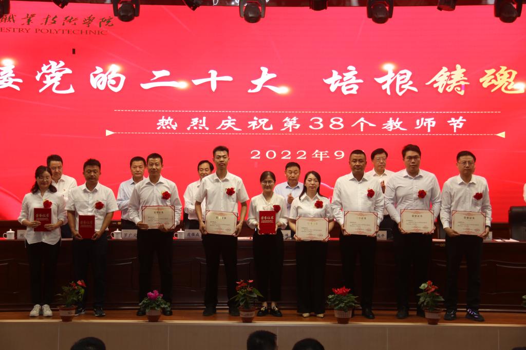 迎接黨的二十大,培根鑄魂育新人。9月9日下午,甘肅林業(yè)職業(yè)技術(shù)學(xué)院隆重舉行慶祝第38個(gè)教師節(jié)暨表彰大會(huì)。黨委副書記、院長陳逸平及其他院領(lǐng)導(dǎo)虎保成、許祖生、羅廣元、王瑞元、劉乃君、劉剛、謝小平、賈昌麟出席,獲獎(jiǎng)集體代表、師德先進(jìn)個(gè)人、優(yōu)秀教師、優(yōu)秀教育工作者、優(yōu)秀輔導(dǎo)員和教師代表參加。大會(huì)由黨委書記高云峰主持。