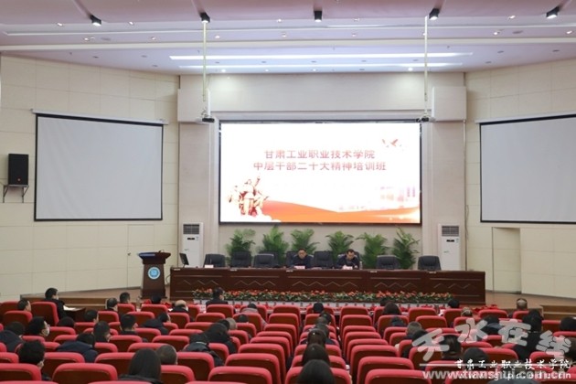 2月13日上午,甘肅工業(yè)職業(yè)技術(shù)學(xué)院中層干部學(xué)習(xí)宣傳貫徹黨的二十大精神專題培訓(xùn)班開班儀式在圖書館5樓學(xué)術(shù)報告廳舉行。學(xué)校黨委領(lǐng)導(dǎo)班子成員出席儀式,黨委書記楊聲作動員講話,黨委副書記、院長安建平主持。學(xué)校副科級以上中層干部120余人參加。