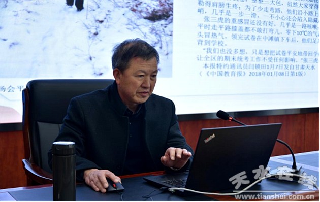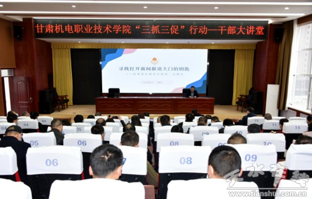 為進一步提升新聞宣傳戰(zhàn)線工作質量,加大新聞傳播力度,切實提高新聞寫作水平,3月24日下午,學校干部大講堂第一講開講。天水市教育局電教館副館長閆鎖田應邀作《尋找打開新聞報道大門的鑰匙》專題講座。學校黨委副書記文云出席并講話。