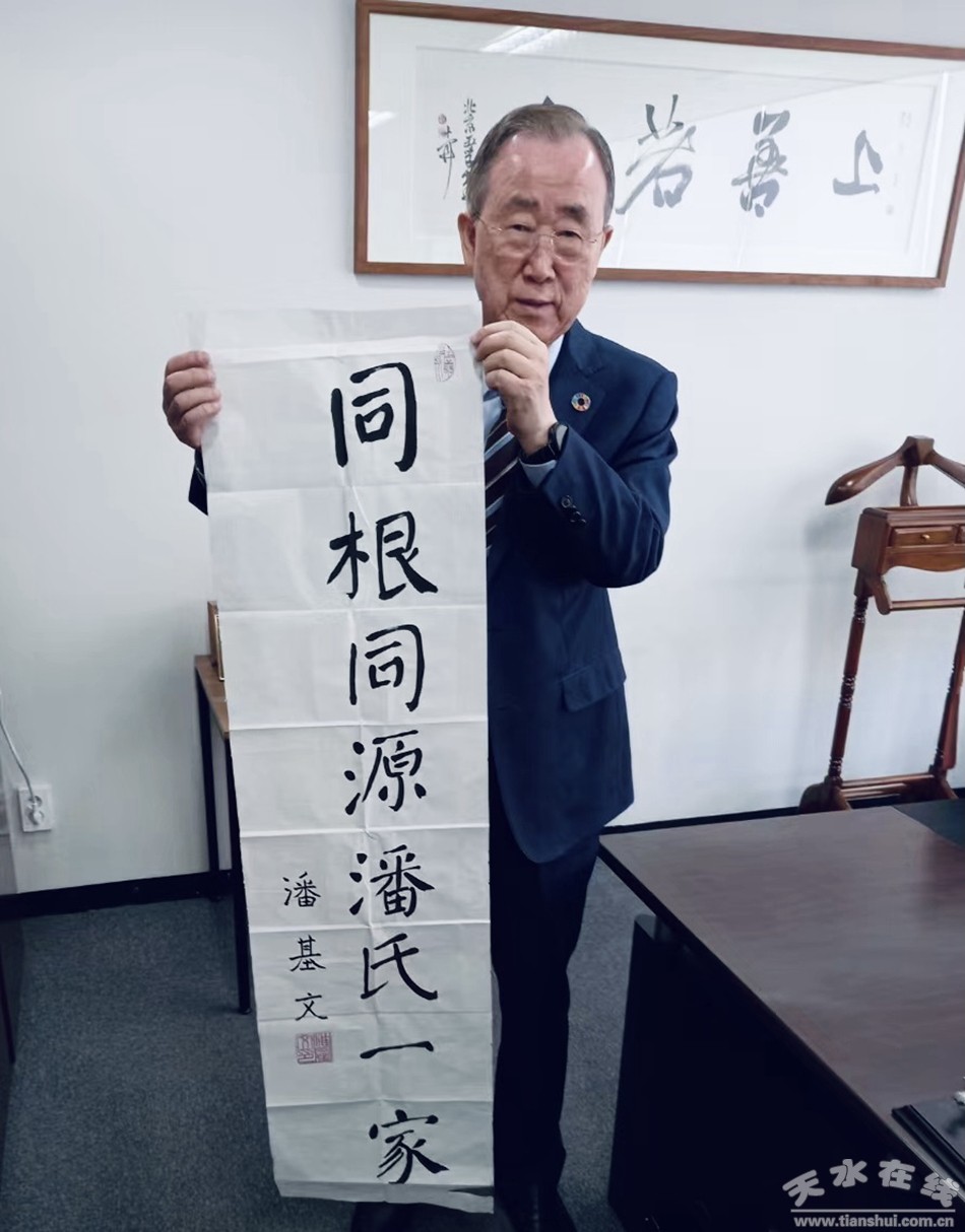 開放日當(dāng)天,圖書館家譜研究室收到了來(lái)自前聯(lián)合國(guó)秘書長(zhǎng)潘基文先生的書法題詞。祝賀養(yǎng)正圖書館開業(yè)。潘詩(shī)林先生也給潘基文先生回贈(zèng)了題詞,傳遞了“人類一家、世界和平”的美好愿景。