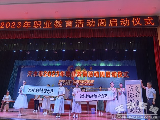 在啟動儀式上,市委教育工委書記、市教育局黨組書記楊瑞峰講話并宣布天水市2023年職業(yè)教育活動周正式啟動;市教育局局長沈建玲通報了參加2023年省級技能大賽獲獎情況;市教育局副局長謝建平宣布了天水市職業(yè)啟蒙勞動教育基地建設(shè)學(xué)校名單。