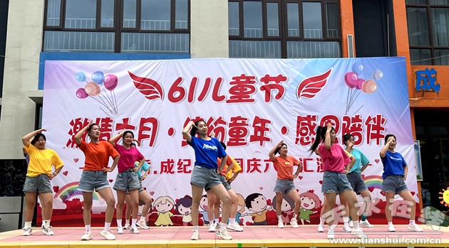 “激情六月”———教師獻(xiàn)藝。老師們用激情的舞蹈、動聽的歌聲,表達(dá)出對孩子的祝福。