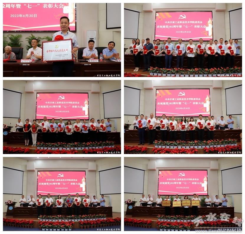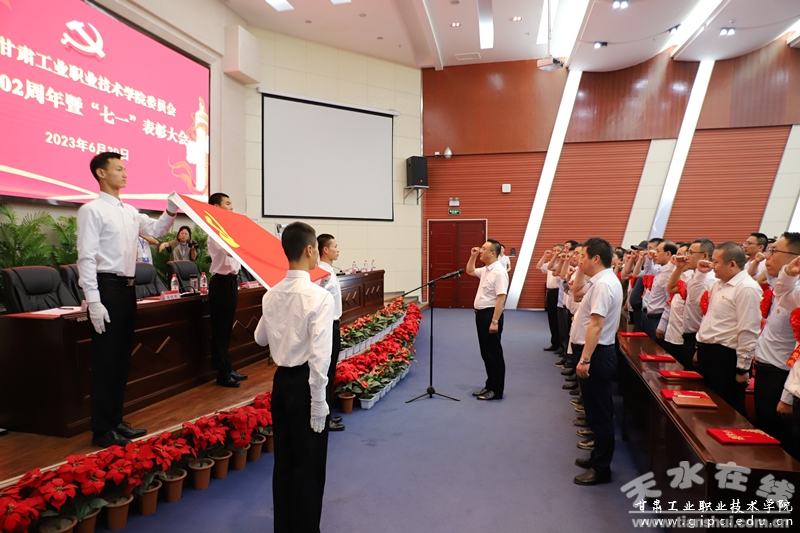 為慶祝中國共產(chǎn)黨成立102周年,全面貫徹落實黨的二十大精神,深入推進學(xué)習(xí)貫徹習(xí)近平新時代中國特色社會主義思想主題教育,表彰優(yōu)秀共產(chǎn)黨員、優(yōu)秀黨務(wù)工作者和先進基層黨組織,6月30日下午,甘肅工業(yè)職業(yè)技術(shù)學(xué)院在智敏學(xué)術(shù)報告廳召開慶祝建黨102周年暨“七一”表彰大會。