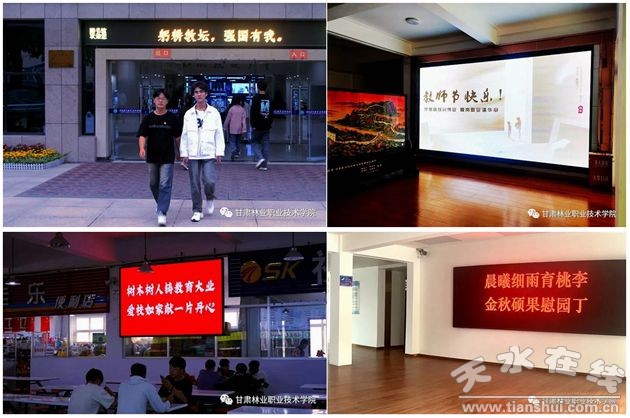 學(xué)院多處LED屏以字幕滾動(dòng)方式深情道出:“教師節(jié)快樂(lè)!”“老師,您好!”“丹青繪隴原、丹心育棟梁”“晨曦細(xì)雨育桃李、金秋碩果慰園丁”“樹(shù)木樹(shù)人鑄教育大業(yè)、愛(ài)校如家獻(xiàn)一片丹心”“厚德精技興偉業(yè)、愛(ài)崗敬業(yè)譜華章”“傳承中華民族優(yōu)良傳統(tǒng)、弘揚(yáng)尊師重教社會(huì)美德”。與此同時(shí),學(xué)院新落成的主題雕塑和景觀小品也紛紛亮燈,展現(xiàn)著“讓教師的榮光在最高處閃耀”的人文情懷,表達(dá)著對(duì)老師的崇高敬意和真誠(chéng)祝福,照亮著老師們心中無(wú)怨無(wú)悔的教育情懷,也照亮著每一位莘莘學(xué)子的光輝前程。