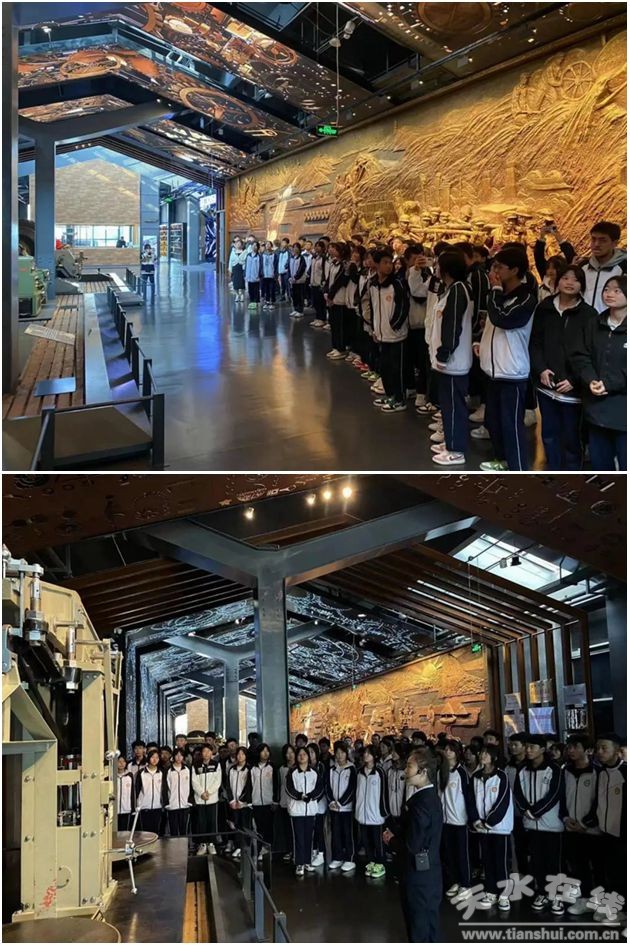 天水工業(yè)博物館設(shè)計(jì)布局新穎、展陳內(nèi)容豐富,在陳列著各種展品的區(qū)域內(nèi),充滿科技感的電子顯示屏和老舊設(shè)備穿越時(shí)空的“對話”,以實(shí)物、文獻(xiàn)、視頻等形式漸次展開天水工業(yè)的歷史畫卷,令同學(xué)們耳目一新。跟隨著講解員的步伐,同學(xué)們依此參觀了天水古代手工業(yè)時(shí)期、民族工業(yè)時(shí)期、地方工業(yè)發(fā)展時(shí)期、“三線建設(shè)”時(shí)期、工業(yè)改革改制時(shí)期和工業(yè)高質(zhì)量發(fā)展時(shí)期六個(gè)篇章,多層次、多角度了解了天水工業(yè)肇始、發(fā)展、轉(zhuǎn)型、繁盛的各個(gè)階段,特別是三線建設(shè)時(shí)期的部分,以大量的實(shí)物和文字圖片資料,真實(shí)反映了黨中央面對當(dāng)時(shí)嚴(yán)峻復(fù)雜的國際國內(nèi)形勢,在天水等地布局開展三線建設(shè)的決策部署,生動呈現(xiàn)了二十世紀(jì)六七十年代天水三線企業(yè)火熱的建設(shè)生產(chǎn)場景,為同學(xué)們從工業(yè)發(fā)展方面了解黨史、新中國史、社會主義發(fā)展史提供了具體而翔實(shí)的史料。