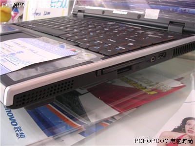 機(jī)身左側(cè)分布端口較多,兩個(gè)USB接口、出風(fēng)口、VGA接口、耳機(jī)接口、麥克風(fēng)接口、Express Card、讀卡器以及1394接口。