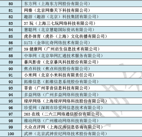 附2013中國互聯(lián)網(wǎng)100強榜單:
