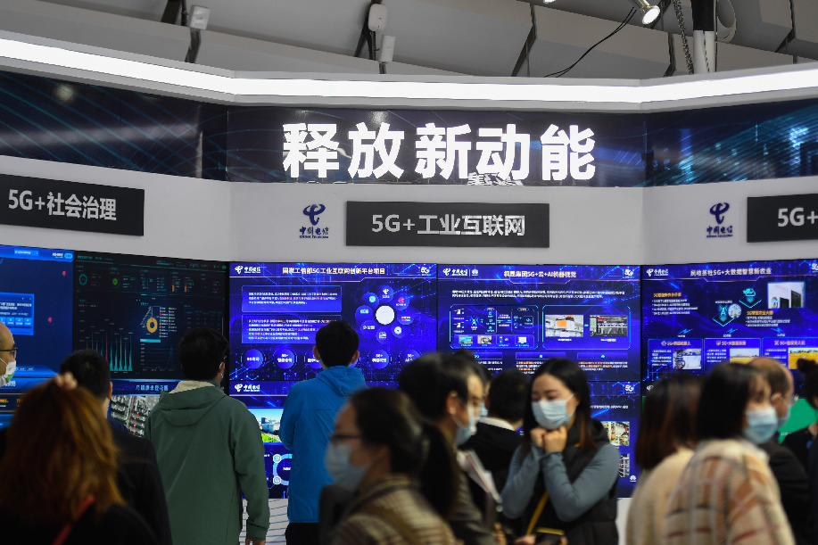 觀眾在“互聯(lián)網(wǎng)之光”博覽會(huì)中國電信展臺了解5G應(yīng)用場景(2020年11月22日攝)。新華社記者 黃宗治 攝