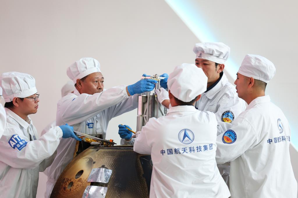 6月26日下午,科研人員對嫦娥六號返回器進行開艙,檢驗關(guān)鍵技術(shù)指標(biāo)完成情況。新華社記者 金立旺 攝