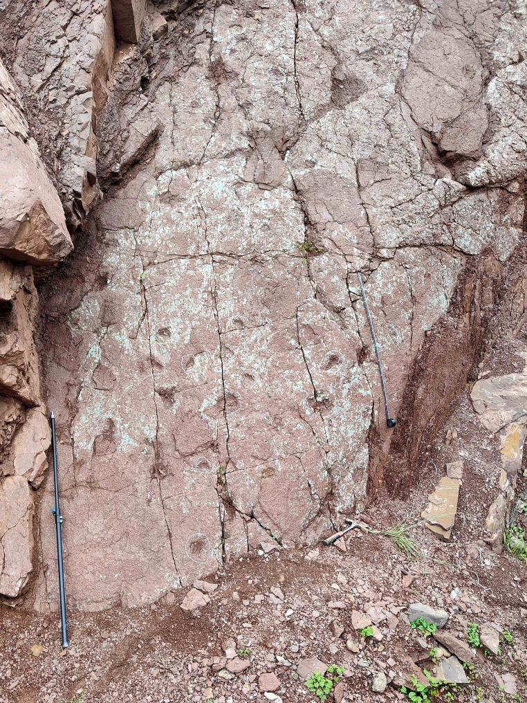 恐龍研究專家、中國(guó)地質(zhì)大學(xué)(北京)副教授邢立達(dá)介紹,昌都所在的侏羅紀(jì)地層最大厚度超4800米,產(chǎn)出了大量恐龍足跡化石。2023年7月,中國(guó)地質(zhì)調(diào)查局相關(guān)人員在此開展化石遺跡調(diào)查時(shí),意外發(fā)現(xiàn)疑似爬行動(dòng)物腳印的巖石石壁,后與中國(guó)地質(zhì)大學(xué)(北京)展開合作。