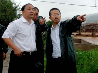 昨晚6時,市長張廣智急赴出險現(xiàn)場察看河勢水情(圖)