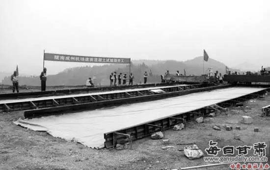 蘭州晨報(bào) 2月21日隴南訊 2月20日,隴南人民盼望已久的大項(xiàng)目隴南成縣機(jī)場跑道開始鋪設(shè)道面混凝土試驗(yàn)段開工。