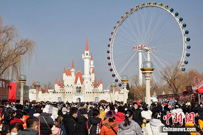 1月22日,農(nóng)歷正月初一,北京石景山游樂(lè)園里已經(jīng)熱鬧非凡,迎春廟會(huì)吸引了大量游客到來(lái)。