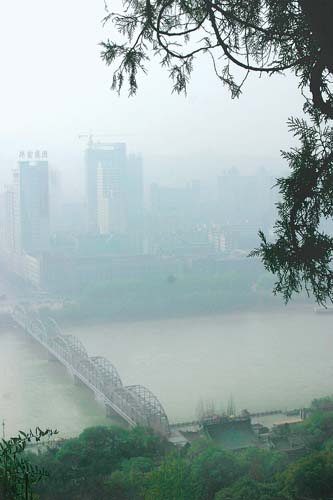 11月14日清晨,大霧籠罩著省城蘭州。本報記者李小龍攝