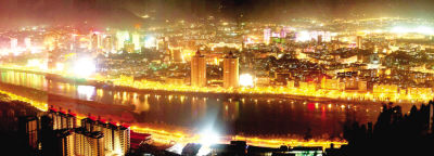 夜幕下的黃河兩岸更加美麗,山水城市倒映一色。站在親水平臺、近水平臺遠(yuǎn)眺白塔風(fēng)姿綽約,近賞綠檐霓虹流金。金城關(guān)文化風(fēng)情區(qū)更是流光溢彩、火樹銀花,它與中山橋、白塔山交相呼應(yīng),讓人仿佛置身于夢幻世界。