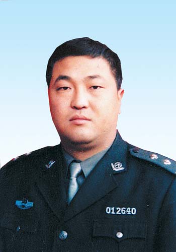 靈堂正中,“沉痛悼念竇勇同志”的橫幅愴然入目;橫幅下方,由菊花、萬(wàn)年青組成的花壇正中擺放著竇勇同志的遺像,英容笑貌依然;靈堂西側(cè),“蘭州特警痛失戰(zhàn)友,赤膽英雄一路走好”的挽聯(lián)異常醒目。