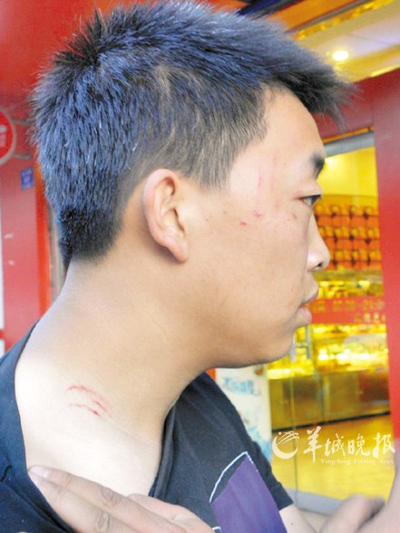 摩托車司機(jī)的眼窩、脖頸上遍布血痕 前日下午,甘肅蘭州市城關(guān)區(qū)旅游局局長張德禮在一起交通摩擦后,喝問對方:“你知道我是誰嗎?我是局長!”隨后雙方大打出手。