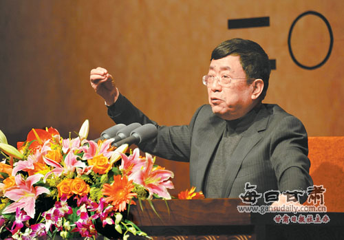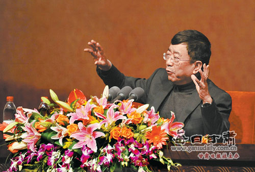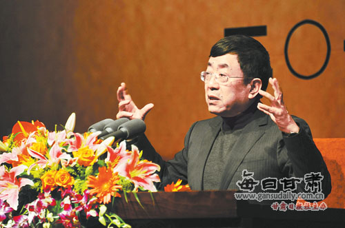 在甘肅大劇院,一場(chǎng)氣氛熱烈的文化講壇正在舉行。隨著臺(tái)上嘉賓睿智大氣的演講,臺(tái)下聽(tīng)眾時(shí)而聚神凝思,時(shí)而笑聲應(yīng)允,時(shí)而報(bào)以掌聲。所有人傾慕的眼神都匯聚到臺(tái)上嘉賓的身上。