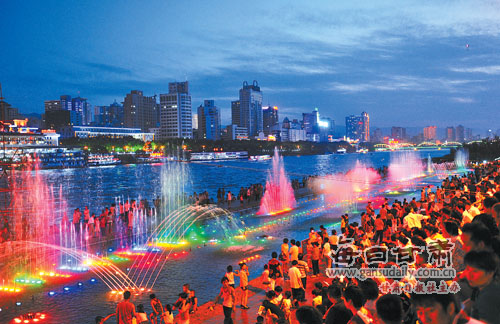 霓虹燈掩映下的蘭州夜景。本報記者 張鐵梁
