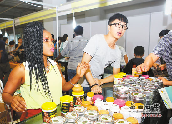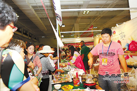 河西葡萄美酒、臨夏牦牛肉干、甘南唐卡……來自我省各地的特產(chǎn)商品在此次蘭洽會商品貿(mào)易展銷會上格外引人注目。展臺前,參觀者一邊聆聽工作人員介紹當(dāng)?shù)仫L(fēng)土人情,一邊駐足品味。
