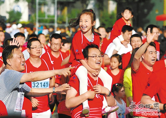 2011年首屆“蘭馬”,當(dāng)時作記者的逯正報了個5公里健身跑。從此,他再也停不下奔跑的腳步,廣州、北京、香港……他先后參加了全國30多站馬拉松比賽,從最初的“門外漢”跑成了“馬拉松達(dá)人”。除了跑馬拉松,逯正還在努力做一名馬拉松文化的傳播者,希望把奔跑的力量傳遞給更多的人。今年,逯正又站在了5公里的起跑線上。原因只有一個,現(xiàn)在女兒4歲半了,他要與女兒一起感受奔跑的快樂。第一次參賽的女兒給了大家一個驚喜!拔覀冊詾樗疃嗯軆晒,沒想到她一直在跑,跑累了就走幾步,一直堅持到終點(diǎn)!薄芭荞R拉松讓人變得不輕言放棄,我相信這種執(zhí)著的品質(zhì)會讓女兒受益終生!卞终f。