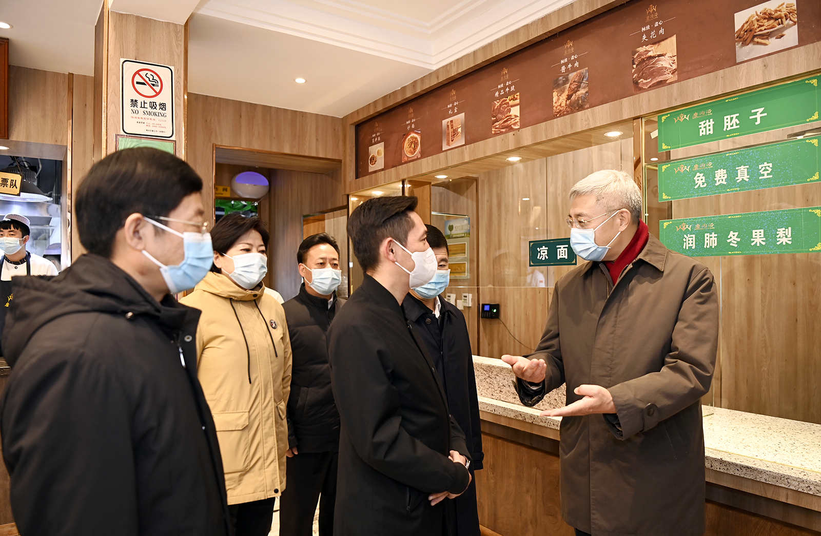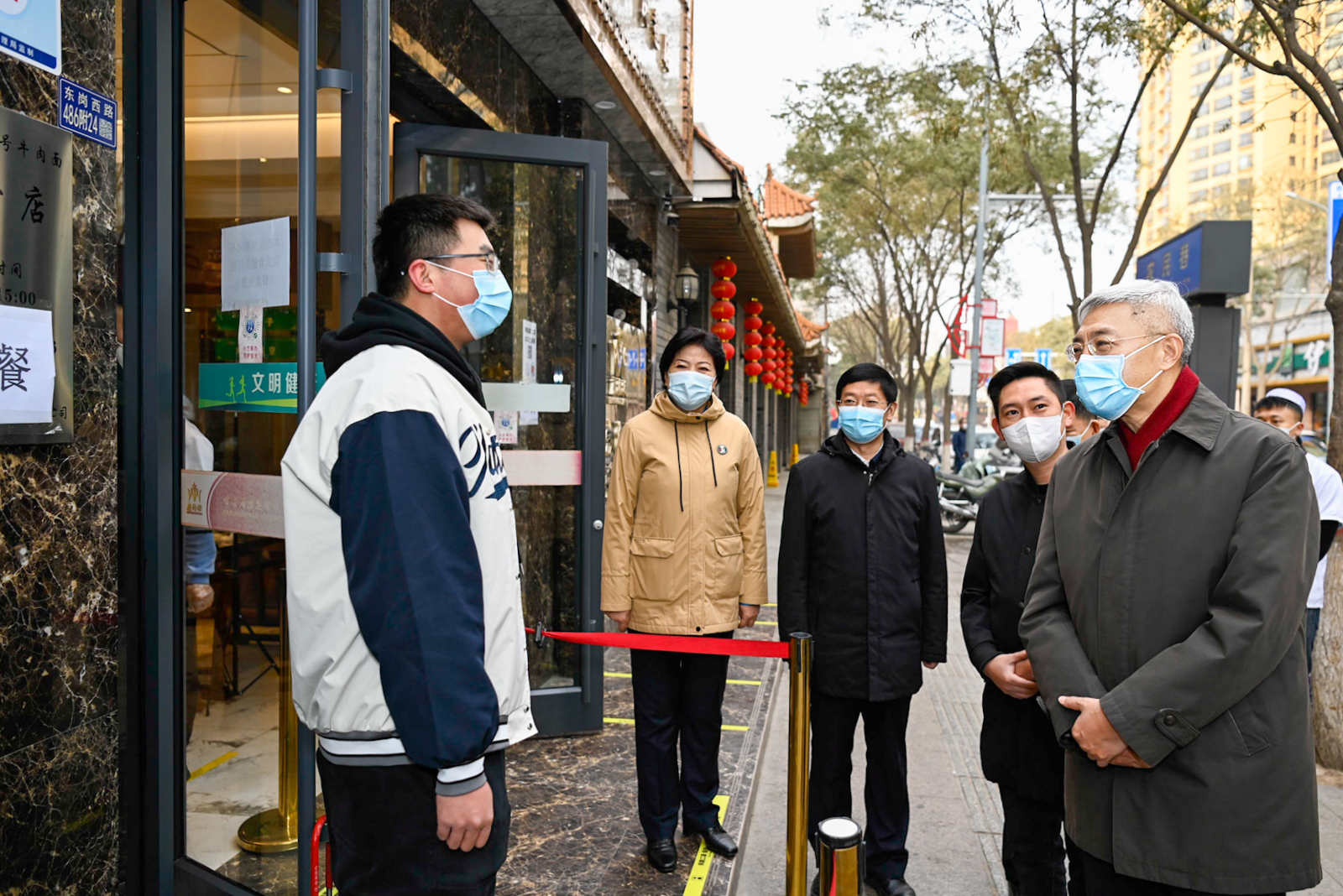 尹弘先后來到農(nóng)民巷磨溝沿牛肉面館、秦安路方鑫糧店,同店鋪負責人和顧客親切交談,詳細了解防控措施落實、恢復營業(yè)、保供穩(wěn)價等情況。他強調(diào),要嚴格執(zhí)行掃碼測溫、清潔消殺、“一米線”等防控要求,逐步恢復正常經(jīng)營,滿足群眾生活需求。在城關(guān)區(qū)云祥小區(qū),尹弘實地調(diào)研小區(qū)管理和生活服務(wù)保障等情況,強調(diào)要科學調(diào)度、統(tǒng)籌用好防控力量,繼續(xù)落實解封后各項管控措施,精心保障居民基本生活,鞏固好來之不易的防控成果。