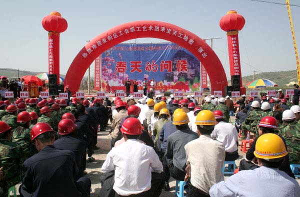 四月的天水姹紫嫣紅、鶯歌燕舞,到處一派春光明媚的景象。4月29日,在“五一”國際勞動(dòng)節(jié)來臨之際,由市總工會麥積區(qū)辦事處主辦、寶天高速公路協(xié)調(diào)辦協(xié)辦的大型慰問演出“春天的問候”在寶天高速公路BT19標(biāo)段建設(shè)工地拉開帷幕,給寶天高速公路的建設(shè)者們送上一道豐盛、精美的節(jié)日文化大餐。