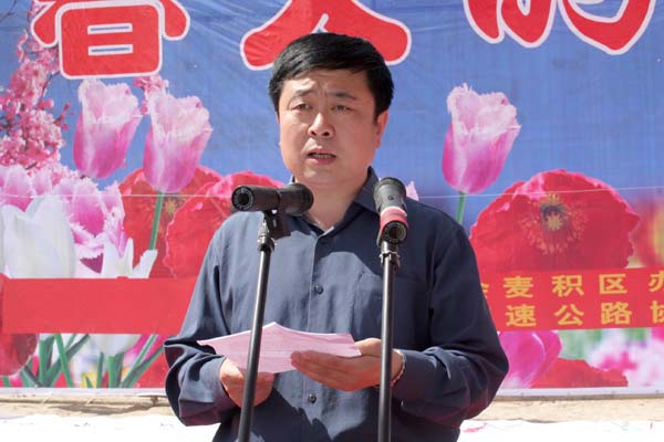 麥積區(qū)委書記蔣曉強(qiáng)代表區(qū)委、區(qū)政府和全區(qū)58萬人民對辛勤奮戰(zhàn)在寶天高速公路建設(shè)一線的廣大建設(shè)者表示親切的慰問和崇高的敬意。他說,寶天高速公路甘肅段是國家確定的西部大開發(fā)十大重點(diǎn)工程之一,也是打通甘肅東出口的重要通道,更是天水乃至甘肅經(jīng)濟(jì)騰飛的新航道。為了支援西部大開發(fā)、建好寶天高速路,廣大建設(shè)者從五湖四海來到隴上江南的麥積區(qū)安營扎寨,風(fēng)餐露宿,克難攻堅(jiān),苦干實(shí)干,使工程建設(shè)取得重大進(jìn)展。特別是廣大建設(shè)者在工程建設(shè)中表現(xiàn)出來的求真務(wù)實(shí)的工作態(tài)度、科學(xué)管理的嚴(yán)謹(jǐn)作風(fēng)、頑強(qiáng)拼搏的進(jìn)取精神、默默無聞的奉獻(xiàn)意識,更為麥積區(qū)廣大勞動(dòng)者樹立了學(xué)習(xí)的榜樣,建設(shè)者們?yōu)閷毺旄咚俟方ㄔO(shè)付出的辛勤勞動(dòng)和汗水將永遠(yuǎn)銘記在麥積人民心中。