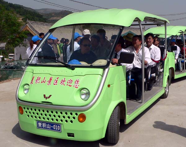 “五一黃金周”期間一批淺綠色新式旅游觀光車(chē)亮相麥積山景區(qū),游客坐上觀光車(chē)后,麥積山美景會(huì)盡收眼底。這不僅給游客提供了交通便利,而且提升了麥積山景區(qū)的游客檔次。