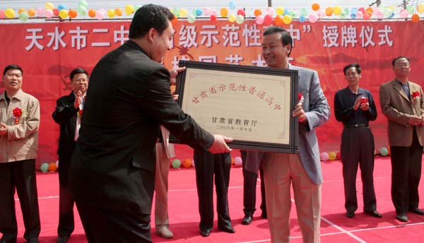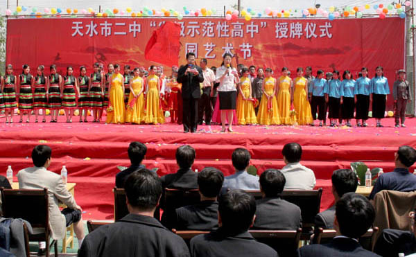 5月21日,在一派節(jié)日喜慶的氛圍中,天水市二中迎來了教學(xué)史上具有歷史意義的時刻——副市長郭奇若代表省教育廳向該校正式授予“省級示范性普通高中”的匾牌,標(biāo)志著天水市二中被正式命名為省級示范性普通高中,這是麥積區(qū)乃至全市教育發(fā)展史上的一件大事。