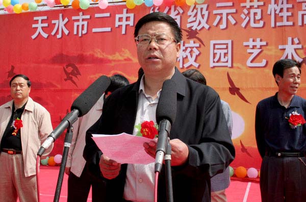 在當(dāng)天的授牌儀式上,麥積區(qū)委副書記賈應(yīng)珍代表區(qū)四大組織向為省級示范高中成功創(chuàng)建做出不懈努力的全校師生員工致以熱烈的祝賀和親切的問候。他在講話中指出,省級示范性高中的掛牌命名是榮譽(yù)、是品牌,更是責(zé)任、是使命,區(qū)委、區(qū)政府希望市二中要以此為新的起點,倍加珍惜和努力,盡所能,傾全力,充分發(fā)揮好典范和高考排頭兵作用,為譜寫麥積教育的新篇章做出更大的貢獻(xiàn)。