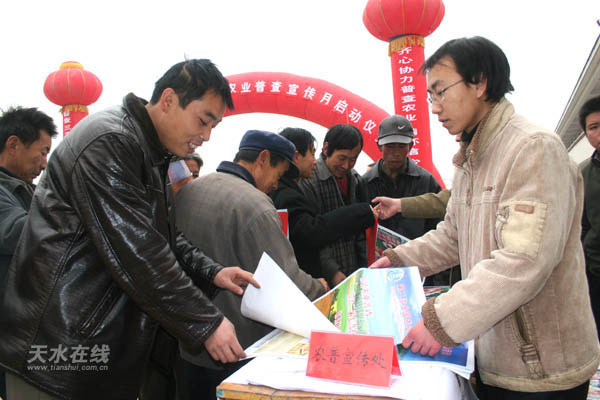2006年12月31日開展的第二次全國農(nóng)業(yè)普查,是對國情國力的一次社會大調(diào)查,也是對全區(qū)“三農(nóng)”發(fā)展的一次大檢閱!度珖r(nóng)業(yè)普查條例》是國務(wù)院制定的一部專門規(guī)范農(nóng)業(yè)普查活動的行政法規(guī)。它的頒布實施,對保證普查質(zhì)量,維護(hù)普查對象的合法權(quán)益,促進(jìn)普查工作的順利開展都具有十分重要的作用。在當(dāng)天的啟動儀式上,麥積區(qū)政府有關(guān)領(lǐng)導(dǎo)強(qiáng)調(diào),各鄉(xiāng)村普查機(jī)構(gòu)、區(qū)普查領(lǐng)導(dǎo)小組各成員單位要堅持“三貼近”的原則,要結(jié)合農(nóng)業(yè)普查的宣傳動員、廣泛深入地宣傳好《條例》,要因地制宜地采取豐富多樣的形式,大力推進(jìn)《條例》宣傳教育進(jìn)機(jī)關(guān)、進(jìn)鄉(xiāng)村、進(jìn)社區(qū)、進(jìn)學(xué)校、進(jìn)單位、進(jìn)農(nóng)戶活動,使全社會了解《條例》,自覺遵守《條例》。