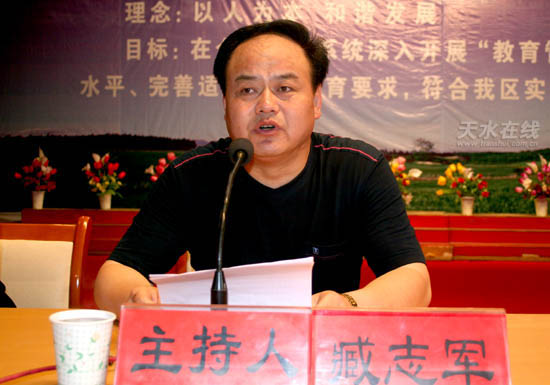 會議由區(qū)委常委、宣傳部長臧志軍主持。區(qū)委常委、副區(qū)長王曉琴代表區(qū)委、區(qū)政府作了題為《落實人本理念規(guī)范教育管理深入扎實地開展教育管理年活動》的重要講話。