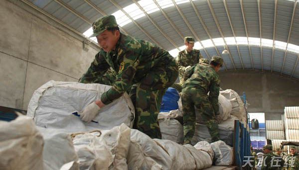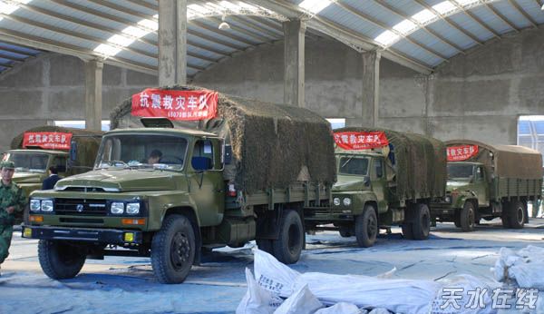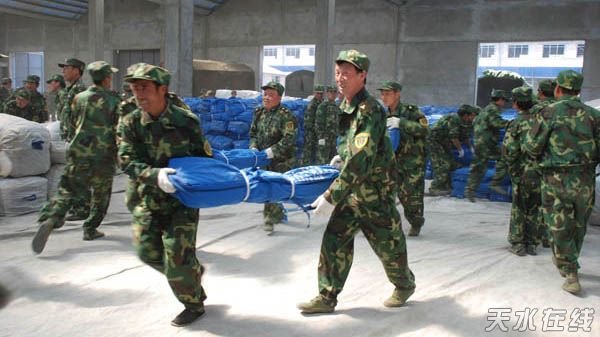 5月14日,國(guó)家民政部首批救災(zāi)物資經(jīng)天水中轉(zhuǎn)后,當(dāng)天下午全部運(yùn)往隴南。
