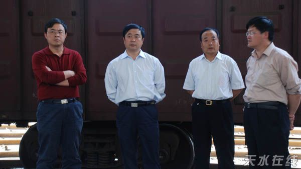 副市長(zhǎng)趙衛(wèi)東(中)、麥積區(qū)委書(shū)記蔣曉強(qiáng)(左)在物資裝載現(xiàn)場(chǎng)