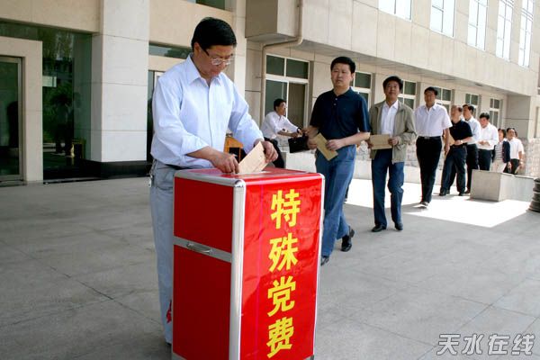 麥積區(qū)四大組織機(jī)關(guān)黨員積極繳納抗震救災(zāi)“特殊黨費(fèi)”