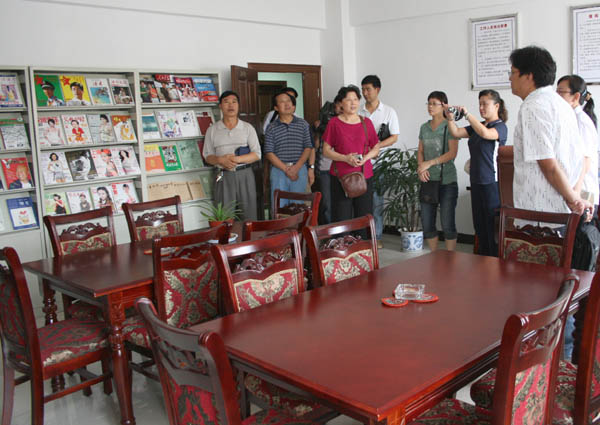 8月21日下午,上海市浦東新區(qū)陸家嘴圖書館一行四人在區(qū)人大副主任趙宏全,政協(xié)副主席陳新宇,宣傳部副部長呂建平,文化館館長田德海等人的陪同下先后參觀了麥積區(qū)文化館未成年人美術(shù)培訓(xùn)班、閱覽室、舞蹈班、成年閱覽室、報(bào)刊閱覽室、電子閱覽室、多媒體教室和圖書室等。