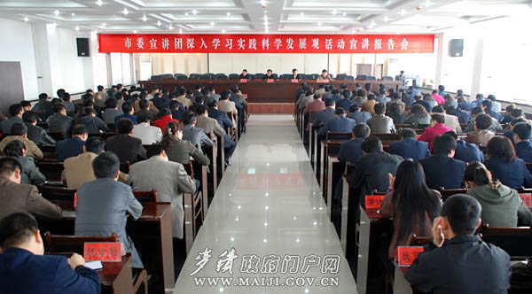 3月19日上午,由市委外宣辦副主任李桂臣,市委黨校校委委員、副教授崔瑞芳,市委黨校黨史黨建教研室副主任、副教授蒲曉光組成的市委宣講團,在麥積區(qū)舉行了一場以學習實踐科學發(fā)展觀活動為主題的宣講報告會。