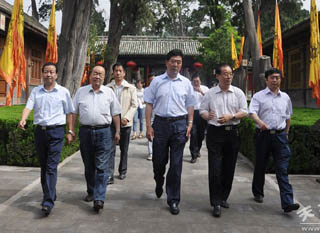 6月20日上午,麥積區(qū)委副書記、區(qū)長張克強在區(qū)委常委、宣傳部長臧志軍,副區(qū)長楊鐵森、曹亞玲的陪同下,帶領區(qū)旅游、商務、招商、文體、公安、交警、運管、電力、安監(jiān)和渭南鎮(zhèn)、中灘鎮(zhèn)等部門和鄉(xiāng)鎮(zhèn)負責人,赴卦臺山就6月21日在卦臺山舉行的2009(已丑)民間祭祀中華人文始祖伏羲大典活動的準備工作進行了現(xiàn)場檢查。