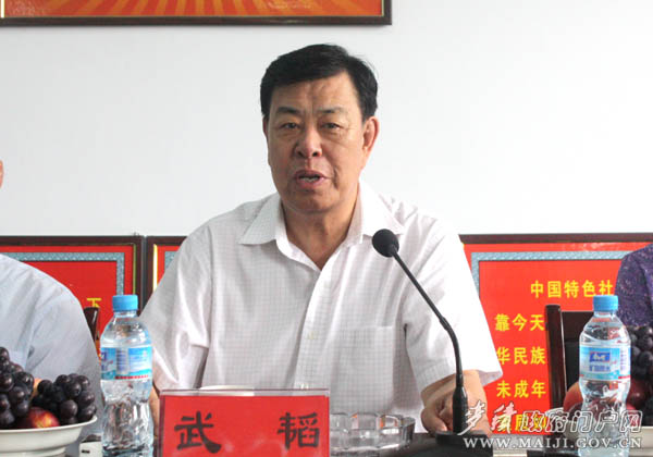 在聽取了麥積區(qū)委、橋南街道辦事處關(guān)心下一代工作匯報(bào)后,武韜對(duì)麥積區(qū)關(guān)心下一代工作取得的成績給予充分肯定。他指出,麥積區(qū)委、區(qū)政府高度重視、大力支持關(guān)工委工作,為關(guān)心下一代事業(yè)健康發(fā)展提供了重要保障。希望麥積區(qū)各級(jí)關(guān)工組織進(jìn)一步發(fā)揮關(guān)工委和“五老”人員在推進(jìn)社會(huì)主義核心價(jià)值體系建設(shè)中的優(yōu)勢(shì)和作用,加強(qiáng)關(guān)工委的組織、制度和“五老”人員隊(duì)伍建設(shè),創(chuàng)新活動(dòng)載體,開展豐富多彩的青少年教育活動(dòng),以優(yōu)異的工作業(yè)績喜迎建國60周年。同時(shí),“五老”人員要根據(jù)身體條件發(fā)揮自己的優(yōu)勢(shì),加強(qiáng)對(duì)新鮮事物的學(xué)習(xí)能力,多關(guān)心困難和有問題的少年群體,不斷開創(chuàng)麥積關(guān)心下一代工作新局面。