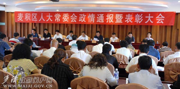 8月4日上午,區(qū)人大常委會主任胡福林主持召開麥積區(qū)人大常委會2009年政情通報暨表彰大會。區(qū)委常委、副區(qū)長謝筱會代表區(qū)六屆人民政府向與會代表通報了全區(qū)上半年工作,法檢兩院向與會代表提供了書面工作通報。