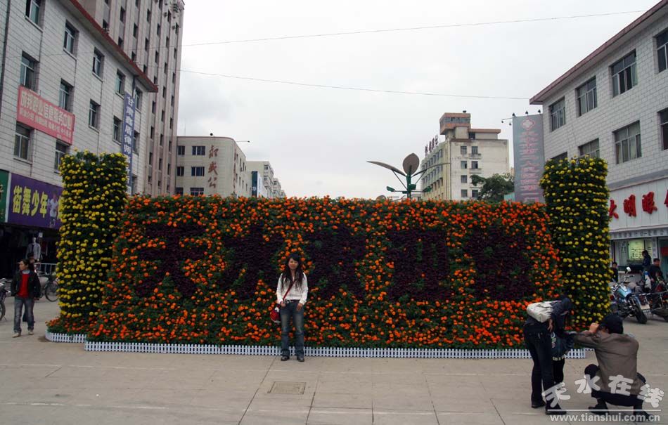 位于麥積區(qū)步行街西口的“天水歡迎您”花壇