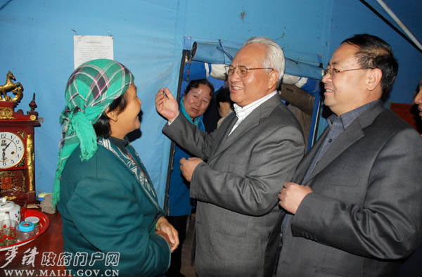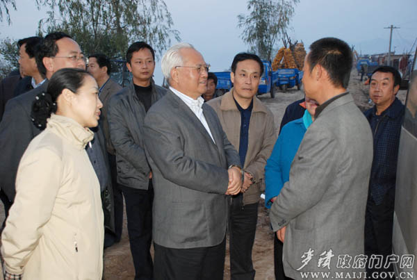 11月6日下午,中共中央委員、民政部黨組書記、部長李學(xué)舉一行在副省長張曉蘭、省民政廳廳長田寶忠,市委常委、政法委書記韓岱成,副市長蕭菡以及麥積區(qū)委書記蒲軍,麥積區(qū)委常委、副區(qū)長謝筱會等陪同下,來到該區(qū)馬跑泉鎮(zhèn)楊灣村就災(zāi)后恢復(fù)重建工作進行了視察指導(dǎo)。
