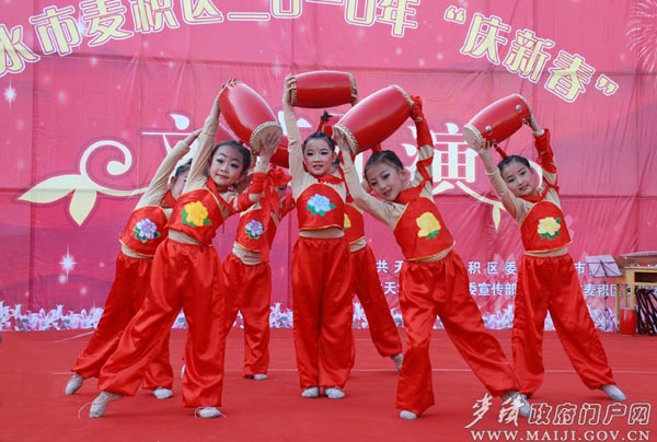2月21日(農(nóng)歷正月初八),麥積區(qū)2010年“慶新春”文藝匯演在該區(qū)商埠路步行街正式啟動。麥積區(qū)委常委、宣傳部長臧志軍主持啟動儀式并宣布:麥積區(qū)2010年“慶新春”文藝匯演啟動。副區(qū)長曹亞玲致辭。