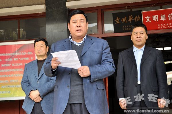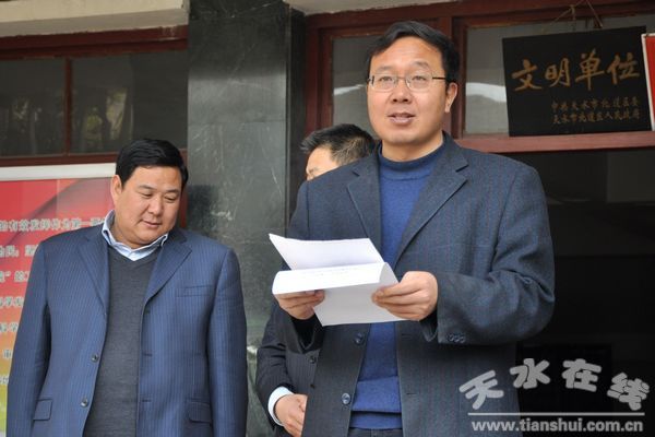 麥積區(qū)委常委、常務副區(qū)長楊繼祥宣布捐款名單