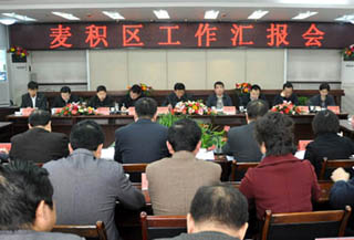 市委副秘書長、研究室主任、麥積區(qū)委副書記仙松濤主持會議并在會上匯報了麥積山景區(qū)開發(fā)建設的情況。