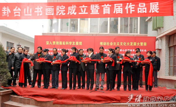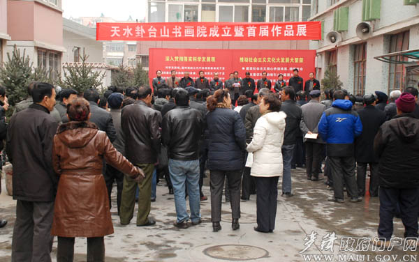 天水市交通運(yùn)輸局局長(zhǎng)竇正安,秦州區(qū)人大常委會(huì)主任楊虎林,麥積區(qū)委常委、宣傳部長(zhǎng)臧志軍,區(qū)人大常委會(huì)副主任程鵬,副區(qū)長(zhǎng)王曙輝,區(qū)政協(xié)副主席陳新宇等出席成立儀式,并和麥積區(qū)廣大書(shū)畫(huà)愛(ài)好者一同參觀了卦臺(tái)山書(shū)畫(huà)院首屆書(shū)畫(huà)作品展覽。