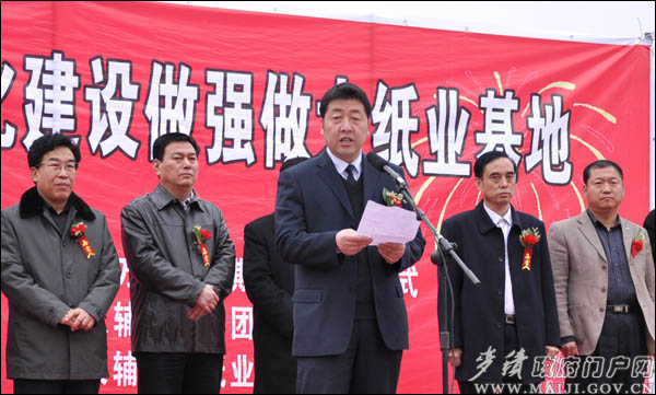 麥積區(qū)委書記蒲軍出席儀式并宣布:甘肅漢輔東方紙業(yè)一期工程開工。
