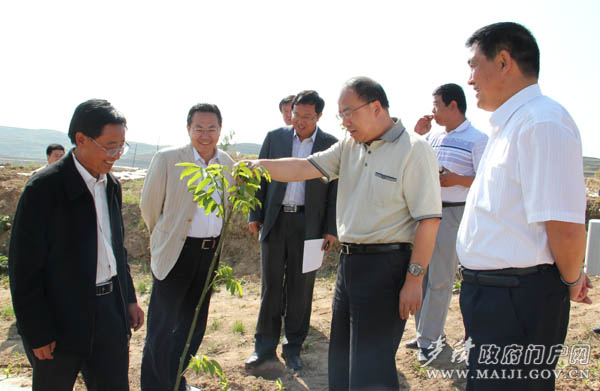 當(dāng)天,彭鴻嘉一行先后深入新陽(yáng)鎮(zhèn)鳳凰山萬(wàn)畝核桃基地、下曲設(shè)施蔬菜基地、蒲池溝流域、劉溝流域、中灘鎮(zhèn)九龍山、緱楊設(shè)施蔬菜基地、花牛鎮(zhèn)元柳梁萬(wàn)畝蘋(píng)果綜合示范基地、北山生態(tài)產(chǎn)業(yè)園等地,就麥積區(qū)梯田建設(shè)、果樹(shù)建園、設(shè)施蔬菜、土地流轉(zhuǎn)、基地道路建設(shè)等農(nóng)業(yè)農(nóng)村工作進(jìn)行了調(diào)研指導(dǎo)。