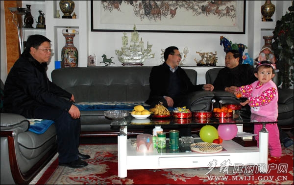春節(jié)來臨之際,1月9日上午,麥積區(qū)四大組織在家領(lǐng)導(dǎo)張智明、賈應(yīng)珍、何東、楊鐵森等,專程對(duì)離退休老干部、老領(lǐng)導(dǎo)、優(yōu)秀老黨員和高級(jí)知識(shí)分子、住院老干部進(jìn)行走訪看望和慰問,向他們致以新春佳節(jié)祝福和問候的同時(shí),也給他們帶去了黨和政府的溫暖與關(guān)懷。